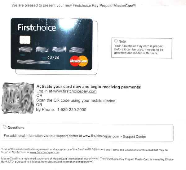 Uso Payoneer desde hace años. En enero me avisaron que Payoneer iba a comenzar a trabajar con Firstchoice Pay. El primero de Febrero me enviaron un Email diciendome que ya podía pedir una tarjeta Firstchoice, con $2500 de límite de compras (POS purchase) y $5000 de extracciones ATM.