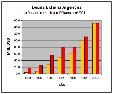 Fuentes: INDEC, Tendencias Económicas y Financieras, Anuario Estadístico 2000. A. Cisneros - C. Escudé, Historia General de las Relaciones Exteriores de la República Argentina. U.S. Consumer Prices Home Page.